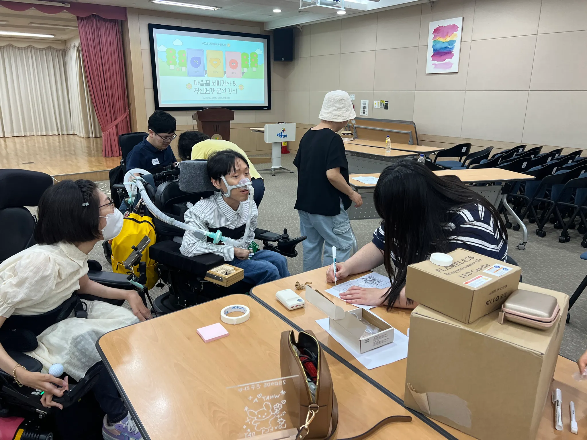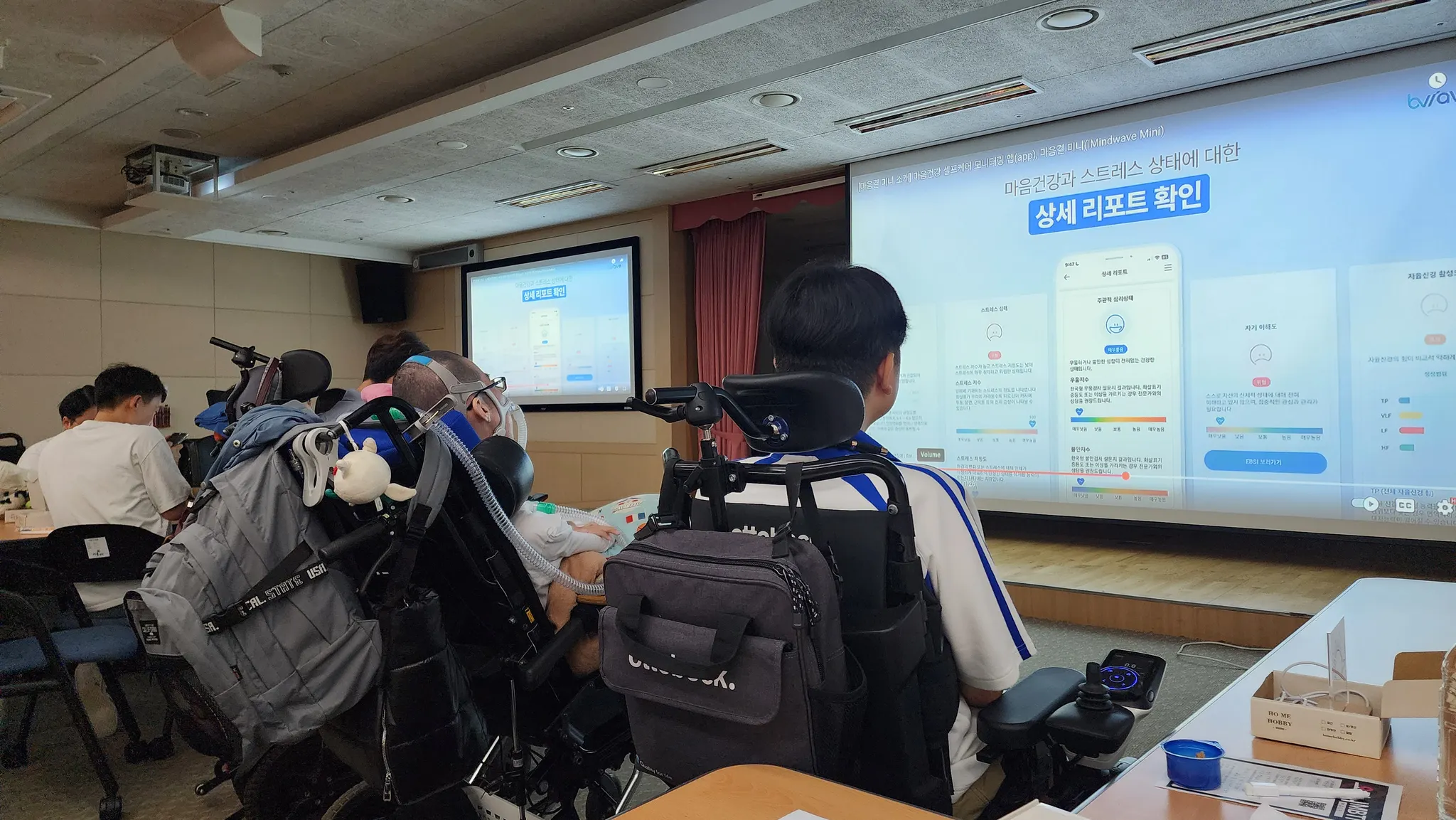 이번 정기모임에서는 비웨이브(Bwave)에서 너나들이 근육병 청년들과 부모님들을 위해 '마음결 뇌파검사'를 무료로 진행합니다.