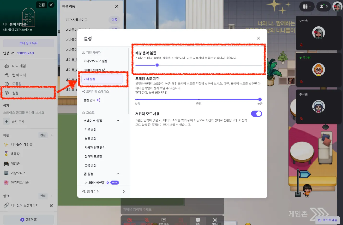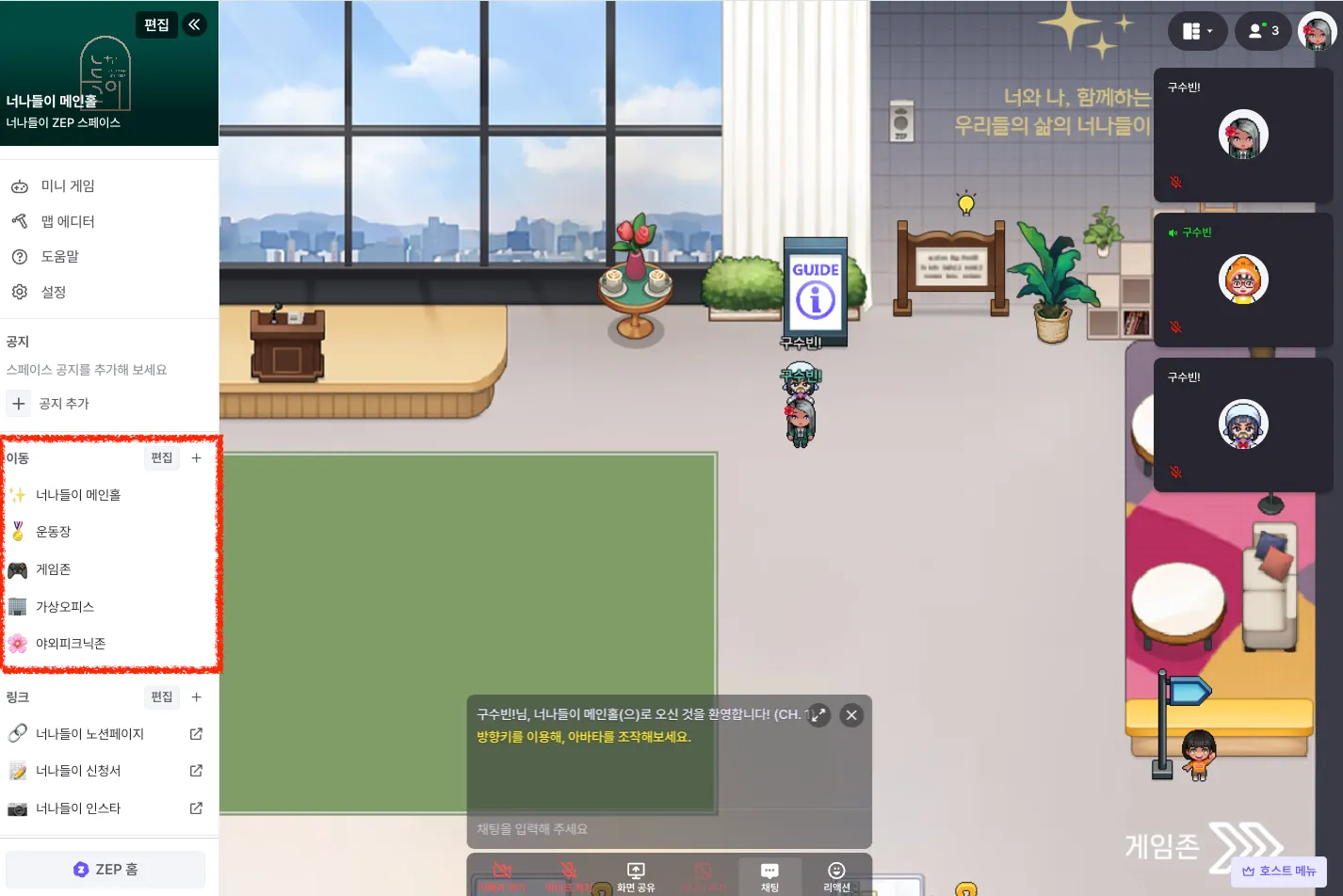 너나들이 ZEP 공간 주소