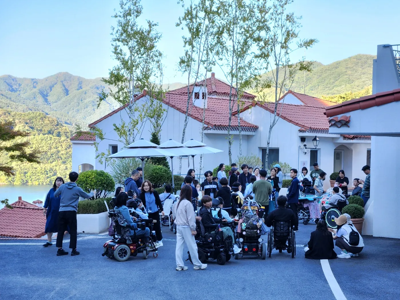 가평우리마을은 가을 단풍이 가득한 산들과 청평호를 바라볼 수 있는 아름다운 위치에 있습니다. 카페, 식당, 기도실, 묵상공간, 도서관, 산책로 등 여러 건물들이 한 마을처럼 이루어진 곳이며, 특히 무장애 시설을 갖추고 있어 모든 참가자가 편안하게 머무를 수 있는 곳입니다.